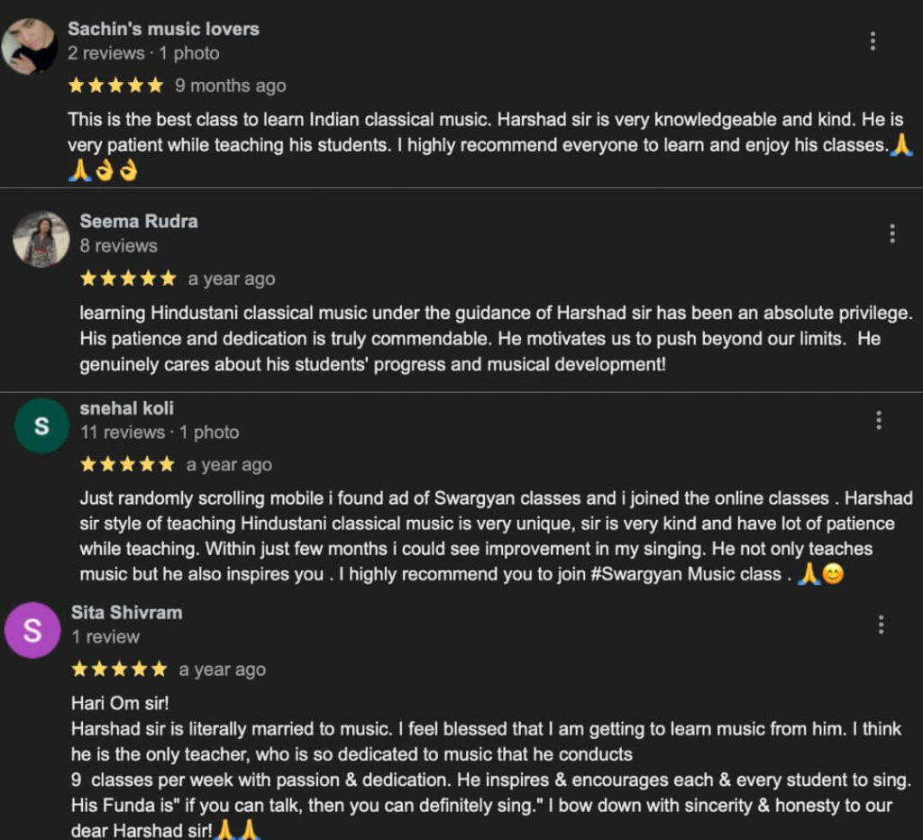 When I learnt under my Guruji Pt. Arun Kashalkar, Within Few Weeks I had Vast improvement in my singing. You will save Years and Years of your Time and Efforts and learn Right Riyaz Techniques for your voice.
